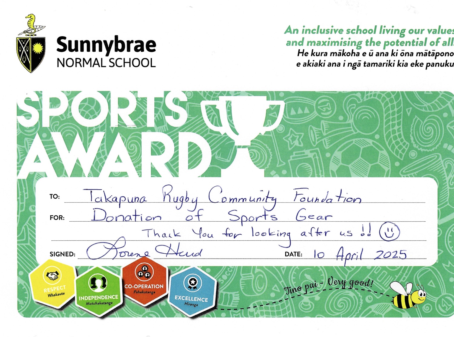 In 2024, the Foundation delivered a range of sports balls, d3 product, and Pita Pit vouchers to primary and intermediate schools within the Takapuna Rugby